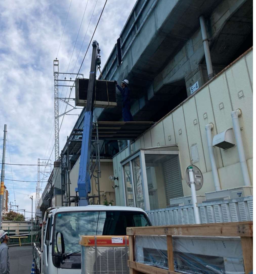 店舗 エアコン 空調設備工事 店舗 重量業者 配管ラッキング 特殊作業 重量設置 冷媒配管 店舗用空調機 【埼玉県朝霞市】某スーパー 空調設備更新 この写真は、高架下の建物屋根に室外機を設置している現場のひとコマ。限られたスペース、足場も不安定。でも、だからこそ面白い。声を掛け合って、一つひとつ確実に仕上げていく。現場にはマニュアルじゃ学べない技術とチームワークが詰まっています。「身体を動かして、技で勝負したい」そんな気持ちがあるなら、きっと楽しめる仕事です。 場所 埼玉県朝霞市 前の施工事例 ビル 【東京都豊島区】ビルでの特殊作業 次の施工事例 店舗 某居酒屋/空調設備更新工事